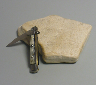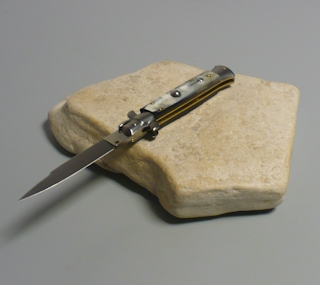 Coltello a scatto Cm.23 Mod.Sdcbm/23-1 Corno di bufalo biondo del Mediterraneo - Italian stiletto
