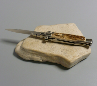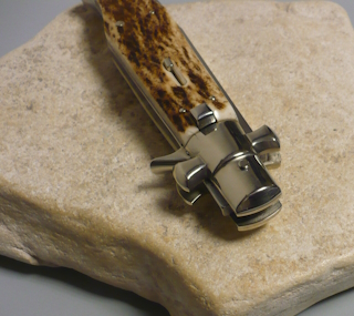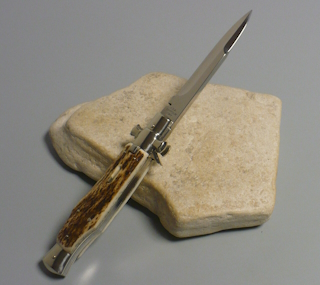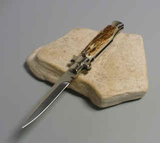 Coltello a scatto Cm.28 Mod.Black Widow Corno di cervo reale europeo - Italian stiletto
