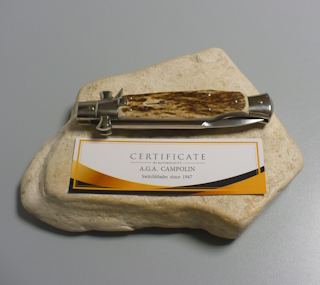 | Prodotto artigianalmente dalla coltelleria A.G.A.Campolin ( Maniago ) Produttore di coltelli a scatto dal 1947 |
