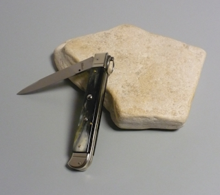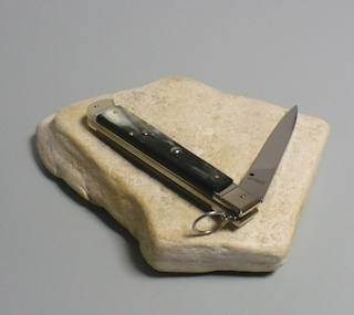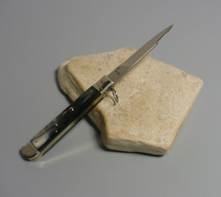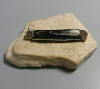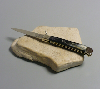 Coltello a scatto Cm.28 Mod.Falcon chiusura anello Corno di bufalo brasilian naturale/2 - Italian stiletto
