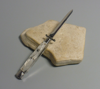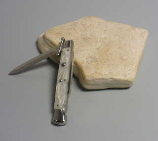 Coltello a scatto Cm.28 Mod.Swinguard Sbpb/28 Perloide bianca ( Imitazione madreperla ) -Italian stiletto