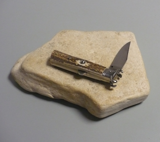 Coltello a scatto Cm.19,50 Mod.Calibro con estrattore di cartucce Corno di cervo europeo reale naturale/1 - Italian stiletto
