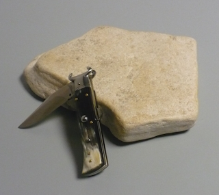 Coltello a scatto Cm.19,50 Mod.Calibro con estrattore di cartucce Corno di bufalo brasilian naturale/2 - Italian stiletto