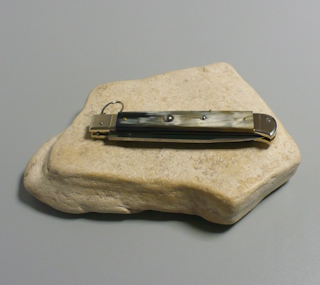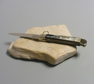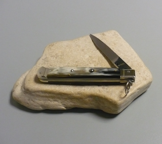 Coltello a scatto Cm.28 Mod.Falcon chiusura anello Corno di bufalo brasilian naturale/3 - Italian stiletto