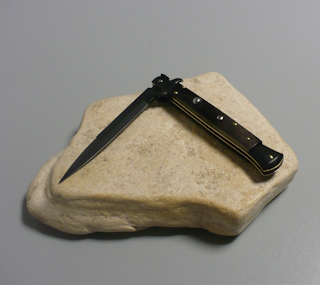 Coltello a scatto Cm.28 Mod.Black Mamba/28-1 Corno di bufalo scuro lucido di montagna - Italian stiletto