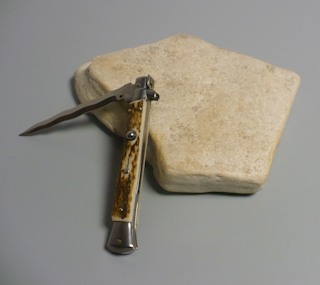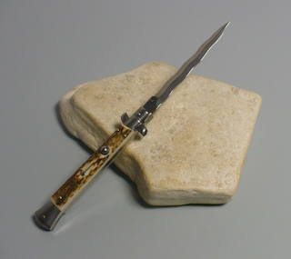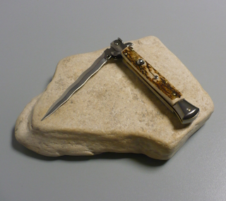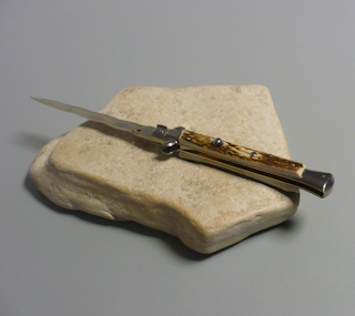 Coltello a scatto Cm.28 Mod.Skccr/28-2 Corno di cervo reale naturale - Italian stiletto