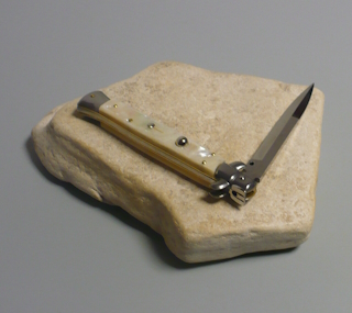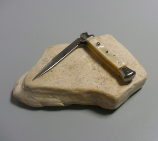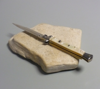 Coltello a scatto Cm.28 Mod.Sbmab/28 Madreperla australiana bianca originale - Italian stiletto