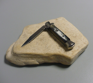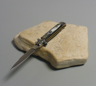 Coltello a scatto Cm.23 Mod.Sswcbb/23-3 Corno di bufalo brasilian naturale - Italian stiletto
