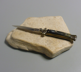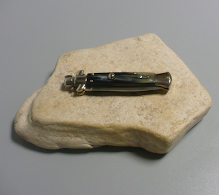 Coltello a scatto Cm.23 Mod.Sdcbr/23-1 Pick Lock Corno di bufalo brasilian -Italian stiletto