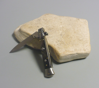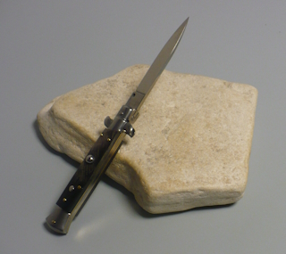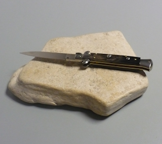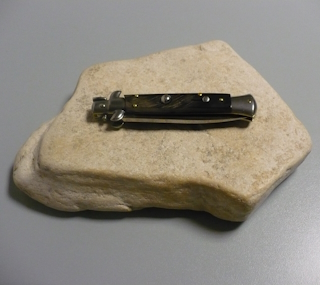 Coltello a scatto Cm.23 Mod.Stbsa/23-2 Corno di bufalo scuro d'acqua -Italian stiletto