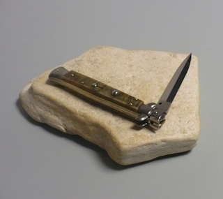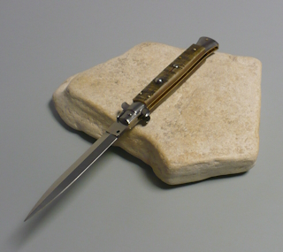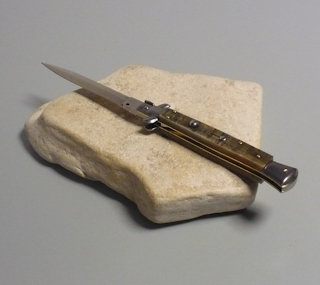 Coltello a scatto Cm.28 Mod.Sdcar/28-1 Corno di ariete chiaro naturale - Italian stiletto