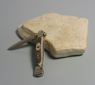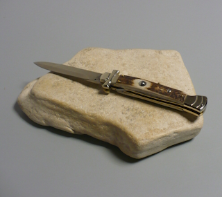 Coltello a scatto Cm.23 Mod.Maltese Corno di cervo reale naturale/2 - Italian stiletto
