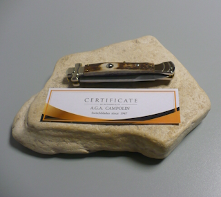 | Prodotto artigianalmente dalla coltelleria A.G.A.Campolin ( Maniago ) Produttore di coltelli a scatto dal 1947 |