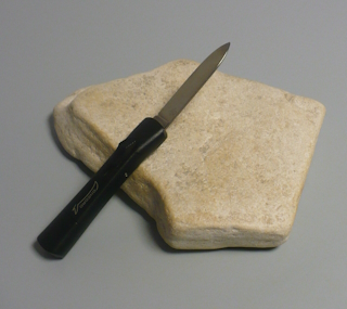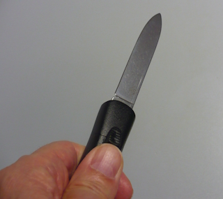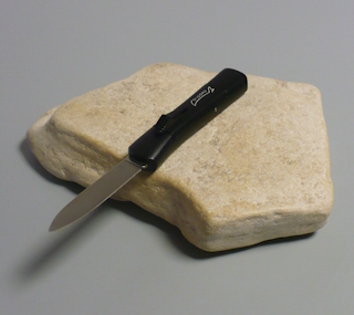 La Lama esce frontalmente spingendo leggermente il pulsante in avanti La lama si chiude rientrando spingendo leggermente il pulsante verso dietro |