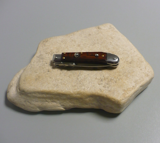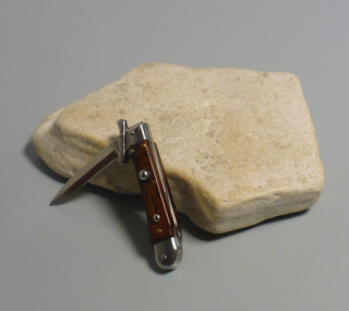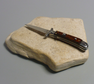 Coltello a scatto 18,50 Cm.Mod.Swinguard con impugnatura in legno di serpente ( Snake wood ) Lama dagger filo singolo Ogni pezzo e'unico realizzato a mano dall'inizio alla fine da AKC Word Questo coltello e'stato prodotto per mantenere una promessa "Ogni pezzo firmato AKC Word"si deve riconoscere dal suo design elegante e dal suono potente del suo scatto di apertura |