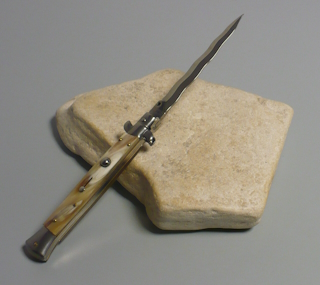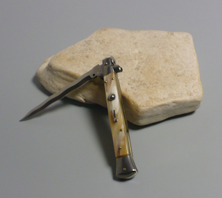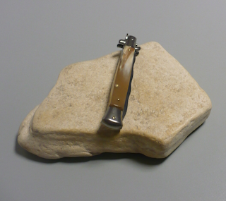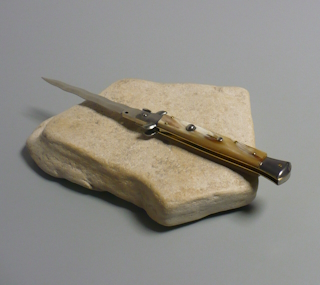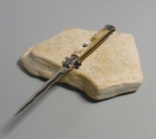 Coltello a scatto Cm.28 Mod.Skcbbe/28-1 Corno di bufalo chiaro europeo naturale - Italian stiletto