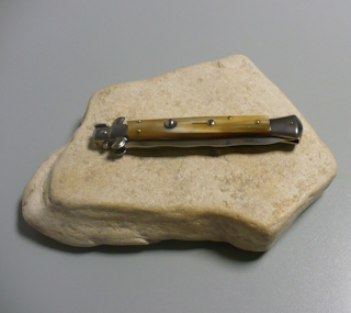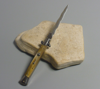 Coltello a scatto Cm.28 Mod.Skcbbe/28-2 Corno di bufalo chiaro europeo naturale - Italian stiletto