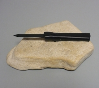 | Coltello a scatto frontale 21 Cm.con impugnatura ergonomica in acciaio teflonato nero opaco Lama dagger doppio filo |