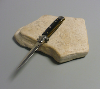 Offerta del mese / Coltello a scatto Cm.23 Mod.Sdpic/23 Polimero imitazione corno scuro -Italian stiletto