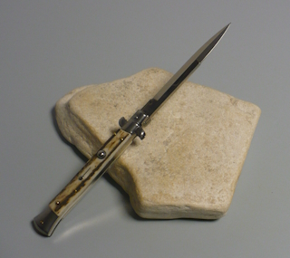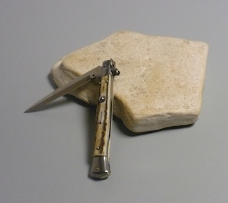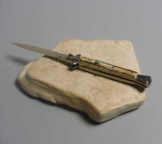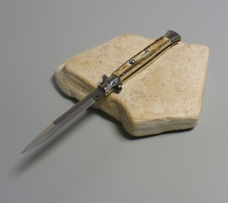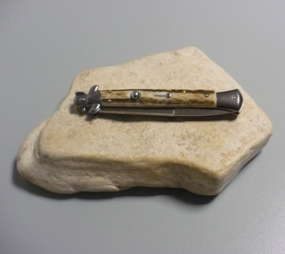 Coltello a scatto Cm.28 Mod.Sbccr/28-3 Corno di cervo reale naturale - Italian stiletto