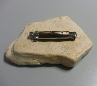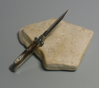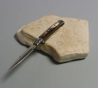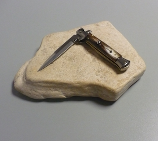 Coltello a scatto Cm.23 Mod.Sbpczm/23-1 Punta di corno di zebu'del Madagascar -Italian stiletto