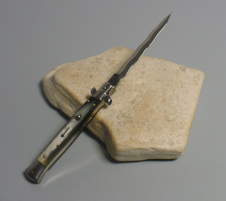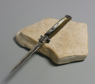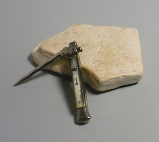 Coltello a scatto Cm.28 Mod.Skclm/28 Corno di bufalo lucido del Montana - Italian stiletto
