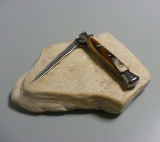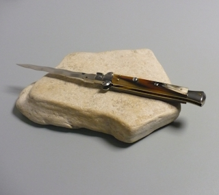 Coltello a scatto Cm.28 Mod.Skpczm/28-1 Punta di corno di zebu'del Madagascar - Italian stiletto
