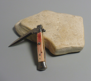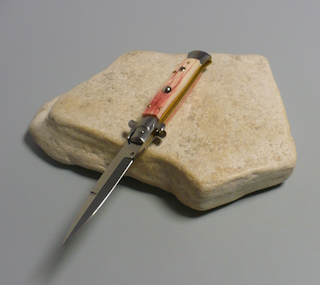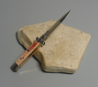 Coltello a scatto Cm.23 Mod.Sbocia/23-1 Osso di cammello invecchiato 20 anni in anilina rossa - Italian stiletto