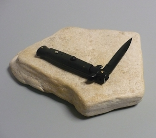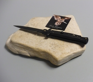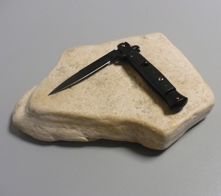 | Coltello a scatto 23 Cm.con impugnatura in teflon nero ( Tactical ) Lama baionetta Ogni pezzo e'unico realizzato a mano dall'inizio alla fine da Frank Beltrame Questo coltello e' stato prodotto per mantenere una promessa " Ogni pezzo firmato Frank Beltrame "si deve riconoscere ad occhi chiusi ascoltando il suono inconfondibile del suo scatto potente e preciso |
