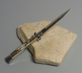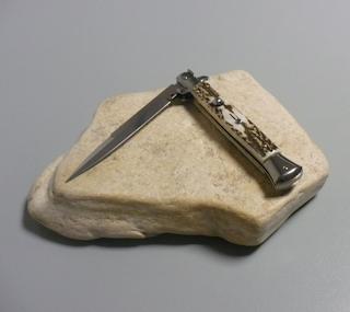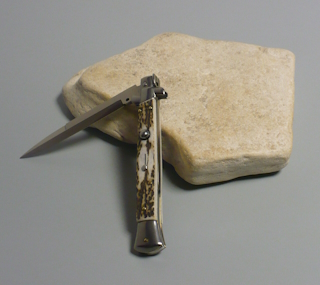 Coltello a scatto Cm.28 Mod.Sbccr/28-1 Corno di cervo reale naturale - Italian stiletto