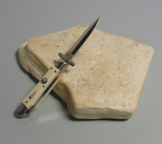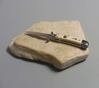 Coltello a scatto Cm.18,50 Mod.Medici Swinguard/18.5 Polimero imitazione avrio bianco - Italian stiletto