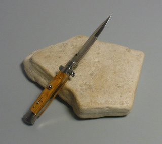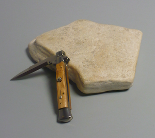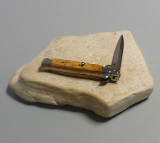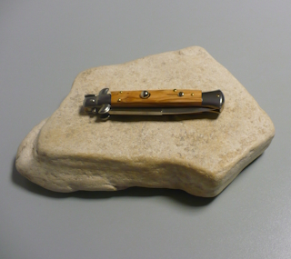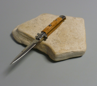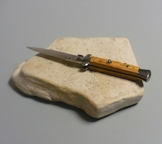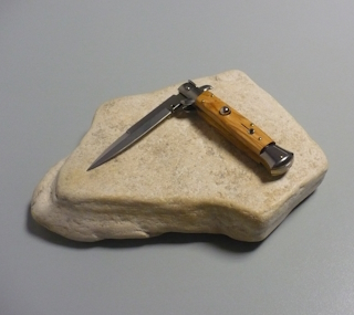 Coltello a scatto Cm.23 Mod.Sblus/23 Legno di ulivo spagnolo -Italian stiletto