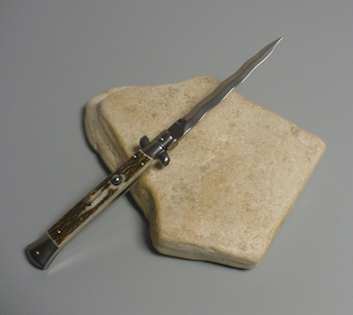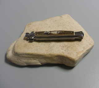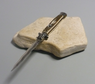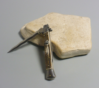 Coltello a scatto Cm.28 Mod.Skccr/28-1 Corno di cervo reale naturale - Italian stiletto