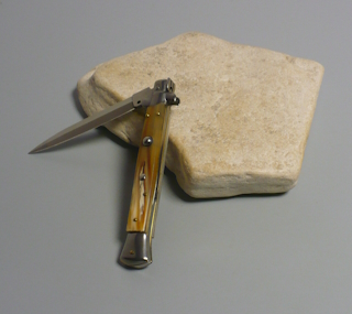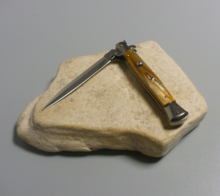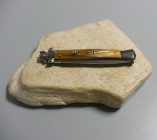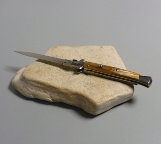 Coltello a scatto Cm.28 Mod.Sdpcbbm/28 Punta di corno di bufalo chiaro di montagna - Italian stiletto
