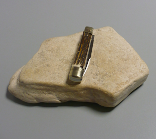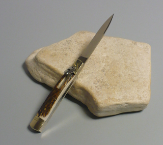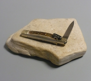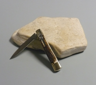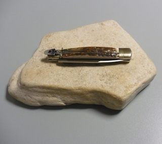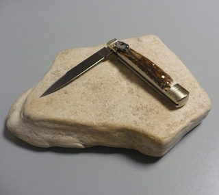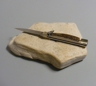 Coltello a scatto Cm.23 Mod.Leverletto Scre/23 Corno di cervo europeo reale - Italian stiletto
